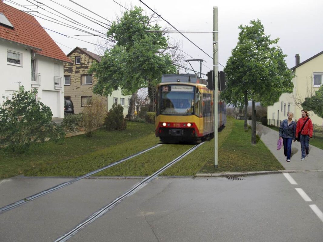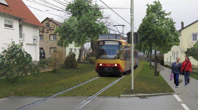Ein Zug wird kommen: So könnte die schöne neue Stadtbahn-Welt aussehen. FOTOMONTAGE: STADTVERWALTUNG