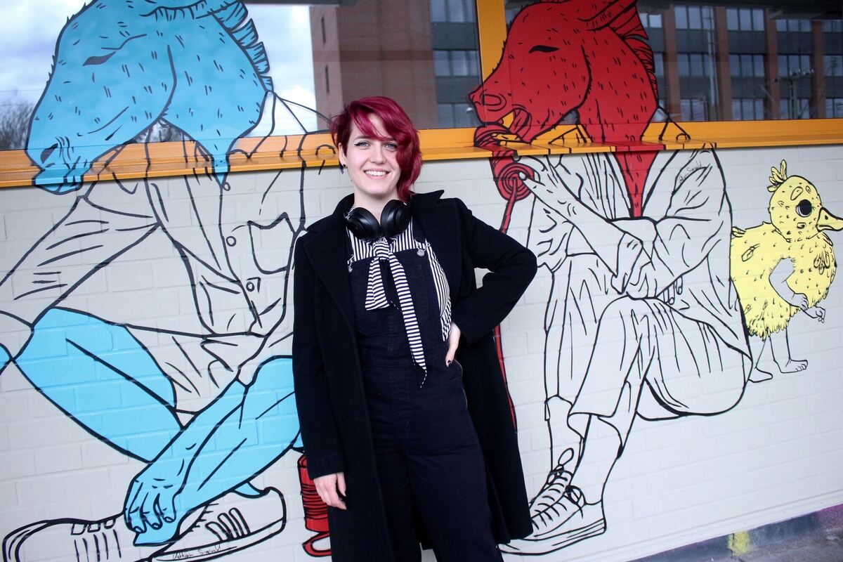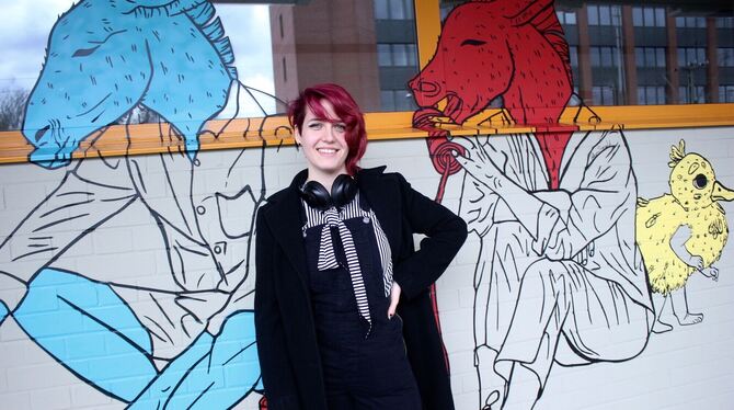 Katharina Sierwald (23) hat sich mit Graffiti an der Paketpost verewigt. FOTOS: SPIESS