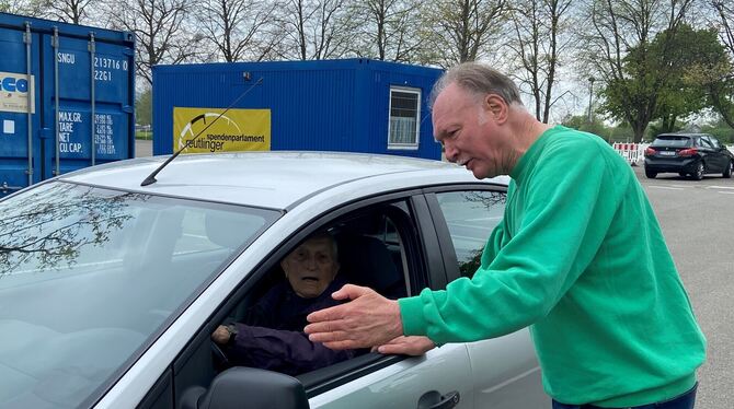 Johannes Konya (rechts) zeigt einem Teilnehmer, was bei der Vollbrems-Übung noch an Extra-Metern rauszuholen ist. FOTOS: RUNGE