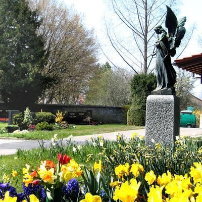Tulpen in allen Farben schmücken schon jetzt, zwei Wochen vor Beginn der kleinen Gartenschau, Friedhof und Grünanlagen in Gönningen.