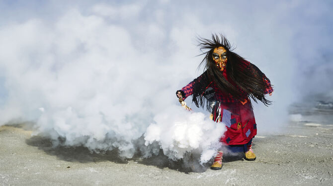 Eine Hexe beim Fasnetsumzug in Engstingen.