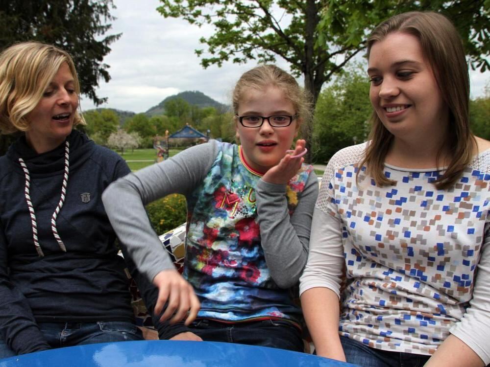 Katrin Haselberger (links) freut sich noch über die Unterstützung und Betreuung ihrer Tochter Lilli durch die angehende Sonderpädagogin Svenja Kaipf. Aber die Einzelbetreuung von behinderten Menschen ist in Reutlingen bedroht.