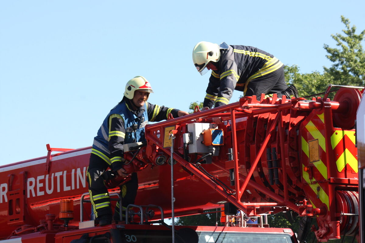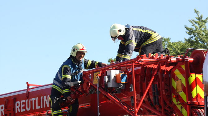 Einsatzkräfte der Feuerwehr üben auf dem Areal der ehemaligen Spedition Betz Industriebrandbekämpfung