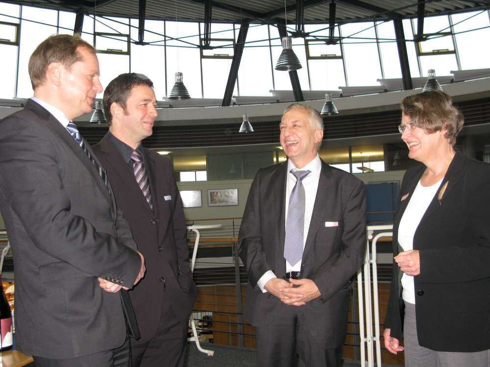 Reutlingens Finanzamts-Vorsteherin Sigrid Brucker-Maschke mit ihrem Tübinger Pendant Dieter Möhler (Zweiter von rechts), IHK-Bereichsleiter Dr. Jens Jasper (Zweiter von links) und IHK-Hauptgeschäftsführer Dr. Wolfgang Epp (links).