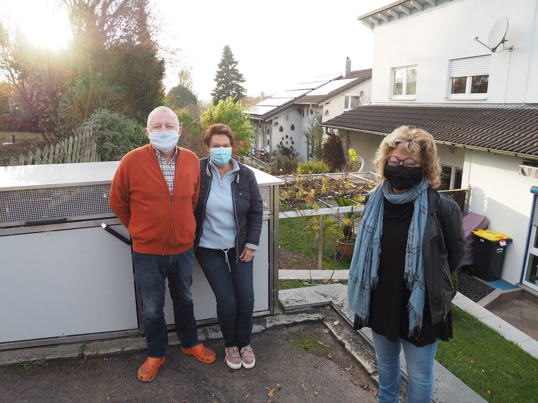 Im Hintergrund sind die Solarzellen zu sehen: Dachstrom-Pionier Holger Lange (mit Carola Rau und Beate Müller-Gemmeke) hat in der Betzinger Klopstockstraße 24 Jahre erfolgreich Strom produziert. FOTO: GLITZ