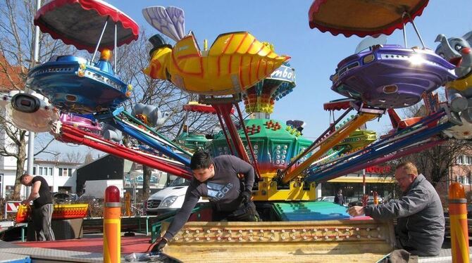 REUTLINGEN. Auf dem Festplatz Bösmannsäcker herrscht die Ruhe vor dem Sturm. Alle Fahrgeschäfte stehen. Es ist angerichtet für das Reutlinger Frühlingsfest, das am Samstag, 18. März, um 11 Uhr beginnt.