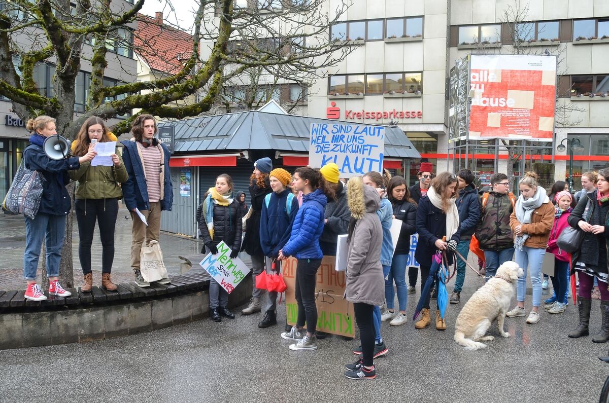 »Es ist gerade jetzt so wichtig wie nie zuvor auf die Straße zu gehen und für unsere Zukunft zu kämpfen! Wir sind die letzte Generation, die noch etwas ändern kann und sind allen, die nach uns kommen schuldig einen lebenswerten Planeten zu hinterlassen«, verkündet das Trio der Demo-Organisatoren mit einem Megafon. Meri Heistermann (18), Chiara Berger (17) und Adrian Zacke (18) sind sichtlich erfreut über mehr als 100 Mitschüler auf dem Platz. Allen hier ist der Ernst der Lage bewußt, auch wenn die Laune eher beschwingt wirkt.