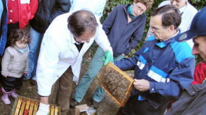 Friedliche Bienen oder? Was ein echter Imker ist, dem graut vor nix, nicht einmal vor Stacheln.