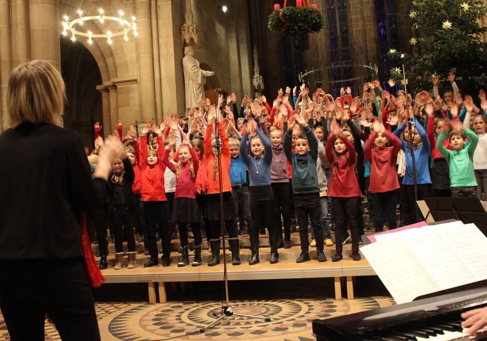 Es soll auch Spaß machen: So bringt man mehr als 300 Schüler aus drei verschiedenen Klassenstufen auf eine gemeinsame Linie. FOTO: SPIESS