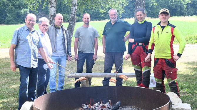REUTLINGEN-MITTELSTADT. Man muss kein armes Würstchen sein, um den frisch gemachten Grillplatz am Ortsrand von Mittelstadt zu schätzen. Am Albvereinsplatz haben Auszubildende des Städtischen Forstbetriebes Reutlingen mit ihrem Meister Gerd Brunke saubere Arbeit geleistet. Um die gemauerte kreisrunde Feuerstelle mit einem praktischen Metallring gruppieren sich vier Bänke - und zwar schlauerweise so, dass auch Rollstuhlfahrer eine Durchfahrtsmöglichkeit haben. Zu finden ist das lauschige Plätzchen unter Birken, Linden und Kastanien leicht: Einfach am Mühlehof vorbeifahren, wobei sich während der Öffnungszeiten des Hofladens die Mitnahme von Grillgut empfiehlt, und schwupps ist man da.