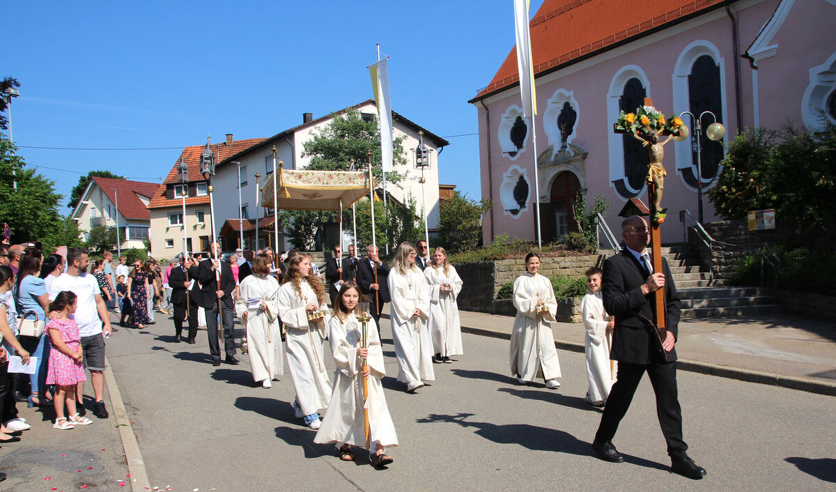 Fronleichnam in Großengstingen mit Prozession und Blumenteppich gefeiert