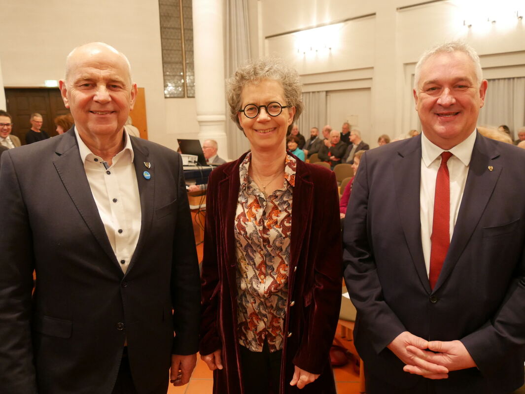 Auf Herausforderungen, aber auch auf beeindruckende Zahlen verwiesen am Freitagabend FWV-Fraktionsvorsitzender Georg Leitenberger (von links), Hochschul-Präsidentin Prof. Sabine Löbbe und FWV-Vorsitzender Jürgen Neumeister.