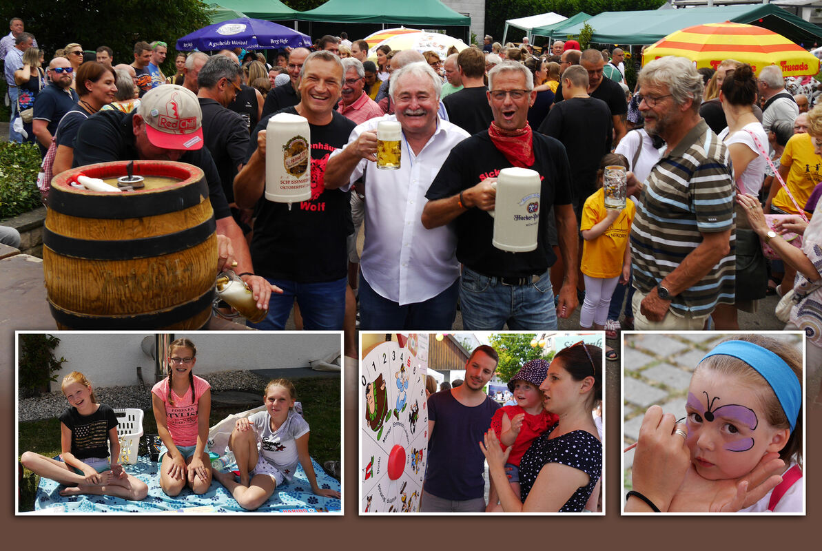 Auch bei der diesjährigen dreizehnten Auflage war wieder der ganze Flecken auf den Beinen. Ab dem frühen Nachmittag verwandelte sich der Platz neben dem Rathaus in einen Biergarten mit Showbühne, die Eichgartenstraße wurde zur sommerlichen Schlemmermeile. Vom Schwabendöner über Pizza, Flammkuchen und Gegrilltes bis zu frittierten Tintenfischringen reichte das Angebot der örtlichen Vereine, von der Mostschorle über Fruchtsäfte und Eis bis zum Cocktail.