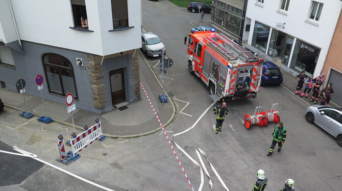 REUTLINGEN. Drei große Feuerwehr-Einsatzwagen und ein -Transporter, angerückt mit Martinshorn, die mit blinkendem Blaulicht am frühen Sonntagabend von etwa 17.15 Uhr an die Burgstraße blockieren - da fragen sich schnell nicht nur Anwohner und Besucher des Eiscafés am Burgplatz: Was ist los? Zig Feuerwehrleute sperren gleich darauf von der langjährigen Shisha-Bar Ates weg die komplette Urbanstraße ab, bis hinüber zur Kaiserstraße.