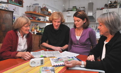 Die Umweltberaterinnen Edith Willmann (links) und Heide Schnitzer (rechts) haben viele gute Energiespar-Tipps für Olav Gantzhorn und Caroline Bader - und ein Messgerät, um die Stromfresser in der Wohnung zu entlarven.