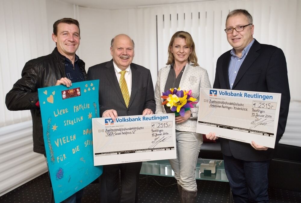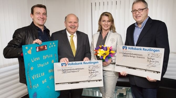 Spende vom »Reutlinger Weihnachtscircus« für den Verein »GEA-Leser helfen« und die Kinderklinik Reutlingen (von links): Michael Sperlich, Verleger Valdo Lehari jr., Andrea Sperlich, Professor Dr. Peter Freisinger.