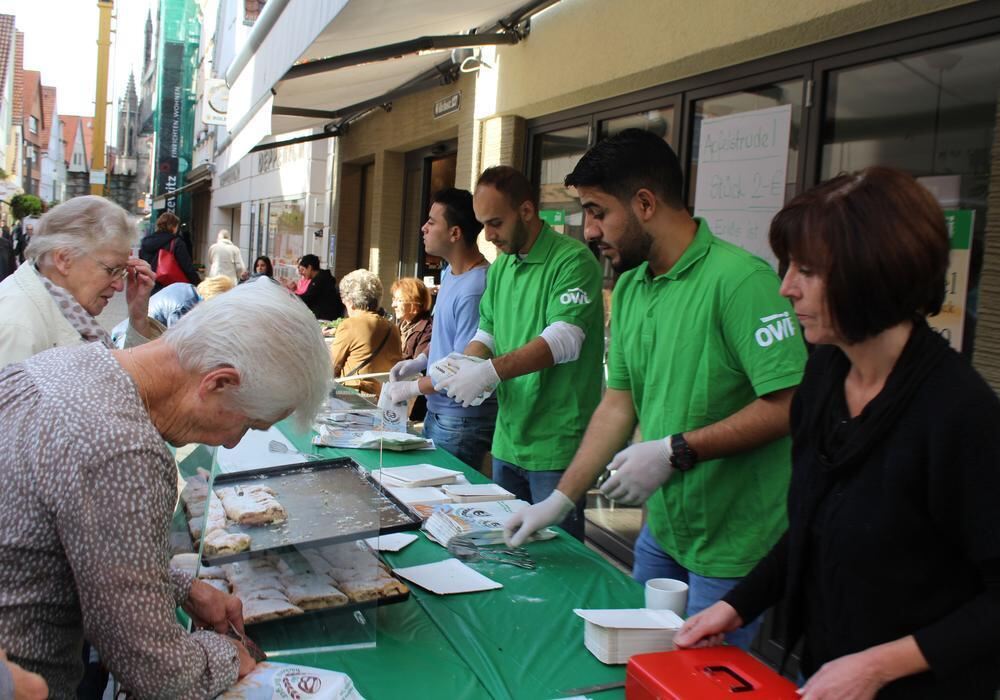Die Apfelstrudelaktion der Händlergemeinschaft »Obere Wilhelmstraße« (OWI) kam gut an: Um 17 Uhr war ausverkauft. Der Erlös kommt der Flüchtlingsarbeit der neuen Marienkirchengemeinde zugute. FOTO: SPIESS