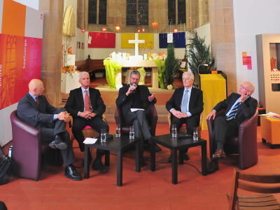 Schwieriges Thema, kompetente Redner in der Reutlinger Citykirche (von links): Dr. Hans Hammann, Dr. Dietmar Beck, Moderator Dr. Günther Renz, Dr. Ulrich Noll und Ralf Denkers diskutierten über Sterbehilfe.