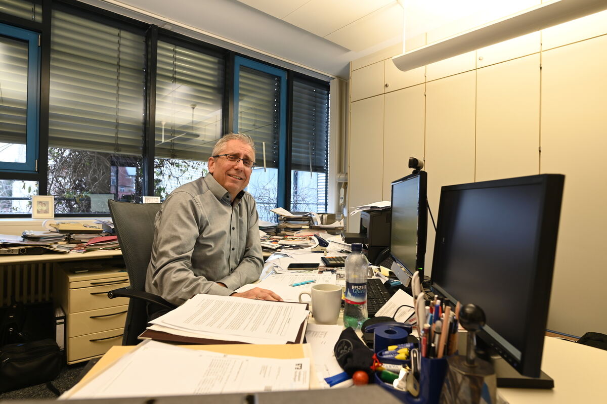 35 Jahre lang war Ewald Heinzelmann Geschäftsführer der Kreishandwerkerschaft Reutlingen. Sein voller Schreibtisch vermittelt einen Eindruck davon, wie viel Arbeit das bedeutet.