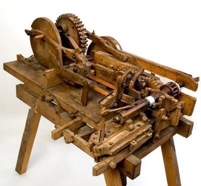 Wäscheklammerfedernautomat, gefertigt von Casimir Bumiller Holz, Metall, um 1890, Heimatmuseum Jungingen.