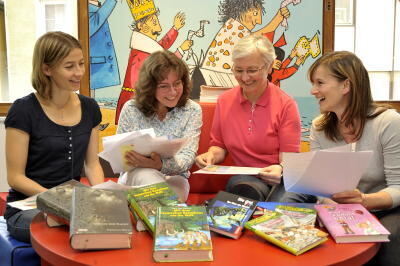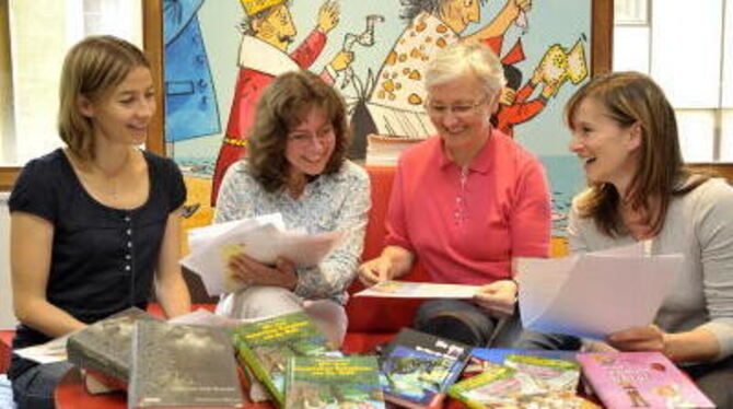 Angesichts vieler ansprechend formulierter Literaturtipps hatte die Jury bei der Preisvergabe gut lachen (von links): Osiander-Mitarbeiterin Susanne Albrecht, GEA-Lokalredakteurin Heike Krüger, Osiander-Mitarbeiterin Hilde Lutz und Kinderbuchautorin und -verlegerin Simone Härter.