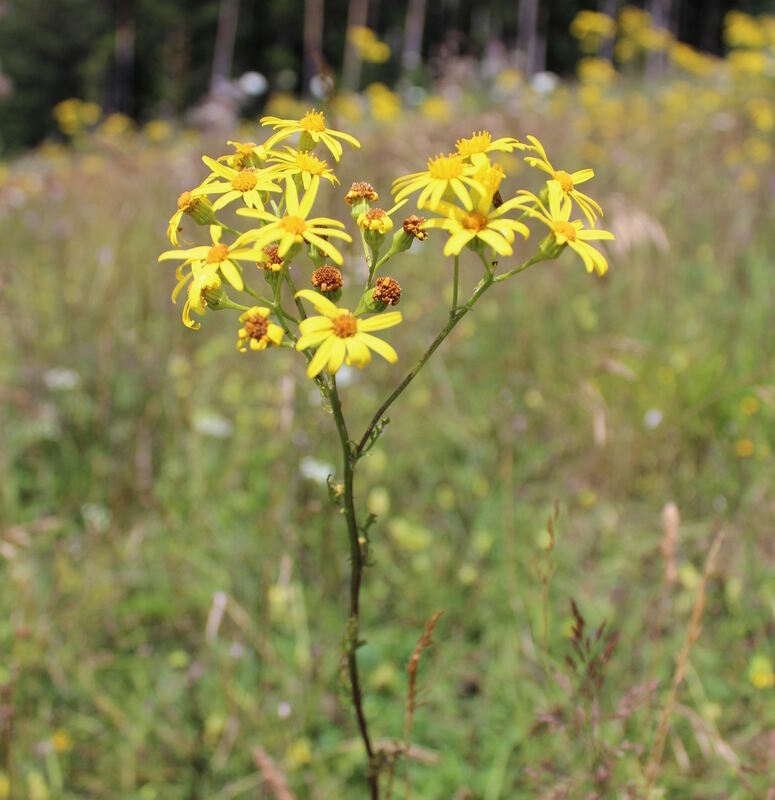 Aus diesem Grund informiert der Landschaftserhaltungsverband im Landkreis Reutlingen über die heimische Giftpflanze. Denn das Jakobskreuzkraut (Senecio jacobaea), das dem Spaziergänger wegen seiner gelben Blüten ins Auge fällt, wird von Pferdehaltern und Landwirten mit Sorge betrachtet. Der Grund: Alle Pflanzenteile, insbesondere jedoch die Blüten, sind wegen ihres Gehalts an Alkaloiden für das Weidevieh sowohl im frischen Zustand als auch im Heu und der Silage sehr giftig. Andererseits ist der gelbe Korbblütler als heimische Blütenpflanze ökologisch von Bedeutung, dient er doch als Pollen- und Futterpflanze für verschiedene Insekten, die das Jakobskreuzkraut teils gezielt befressen, um selbst giftig zu werden und sich so vor Fressfeinden zu schützen.