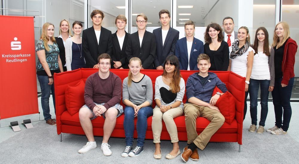 Die jungen Preisträger mit Joachim Pfeiffer und Steffi Aikele, Betreuerin des Planspiels (hinten, Vierte von rechts). FOTO: PR