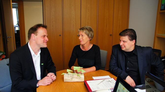In seinem Abgeordnetenbüro: Thomas Poreski mit den Grünen-Kollegen Charlotte Schneidewind-Hartnagel und Daniel Lede-Abal. FOTO: PR