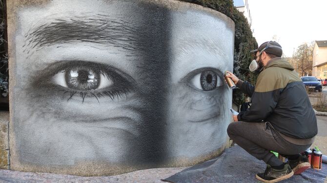 REUTLINGEN. Seit Mittwoch wachen zwei aufmerksame Augen über die Gemäuer der Charlottenstraße in Reutlingen. Mit dem Wand-Bild von Künstler Johannes Blinkle, der sich »Looven« nennt, will die RWT-Gruppe in Reutlingen ein Zeichen gegen unschöne Schmierereien an Fassaden setzen.