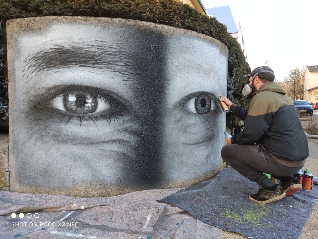 Dass nun Augen den Platz bewachen, der einst bei illegalen Graffiti-Künstlern so beliebt war: reiner Zufall, aber eine »schöne Interpretation«, findet Blinkle. Mit seinem Werk ist der sonst eher selbstkritische Sprayer »extrem zufrieden«. An der grafischen Meisterleistung dürfen sich nun auch Fahrrad- und Autofahrer in der Charlottenstraße freuen – zumindest für einen Augenblick. (GEA)