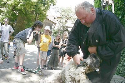 Landleben mitten in der Stadt. Dem Schaf geht's an die Wolle - und Ernst Fauser muss weiter schwitzen.
