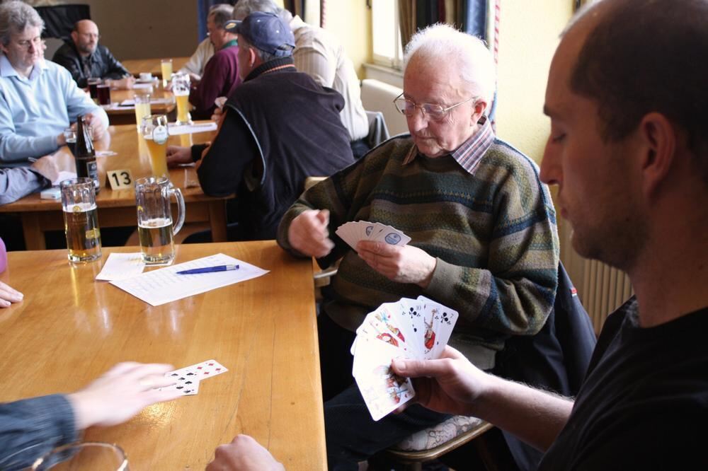 71 Teilnehmer spielten in der Uhlandhöhe an 18 Tischen den Skat-Stadtmeister unter sich aus.