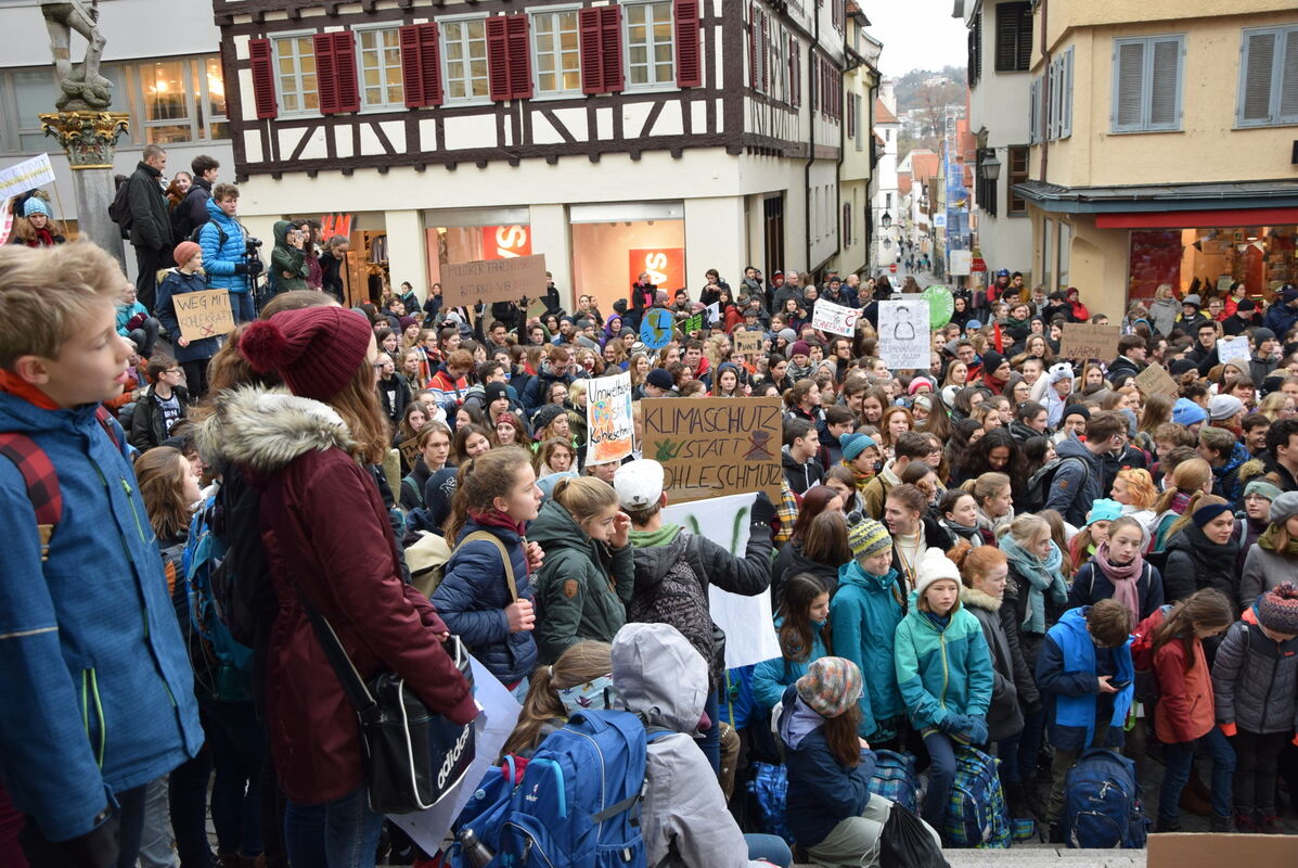 Schule schwänzen für eine andere Klimapolitik? Auf dem Tübinger Holzmarkt folgten viele Kinder und Jugendliche am 18. Januar dem Beispiel der Schwedin Greta Thunberg.