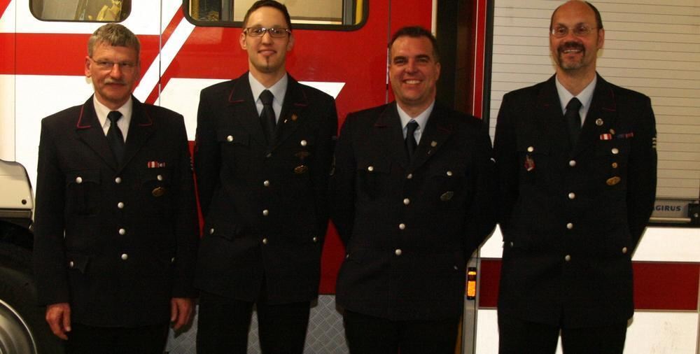 Problemloser Führungswechsel in Sondelfingen (von links): Gerhard Nagel, der neue Abteilungskommandant Thorsten Lipp, sein Stellvertreter Thomas Walz und der scheidende Kommandant Frank Wittel. FOTO: PR