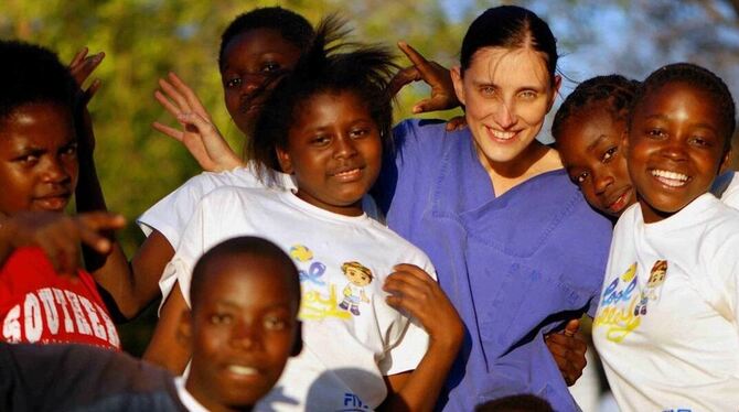 Zahnärztin Claudia Sigel mit ihrem Kollegen Heiner Geigle bei der Arbeit (links). Die Patienten danken der Ärztin für ihre Hilfe. FOTO: PR