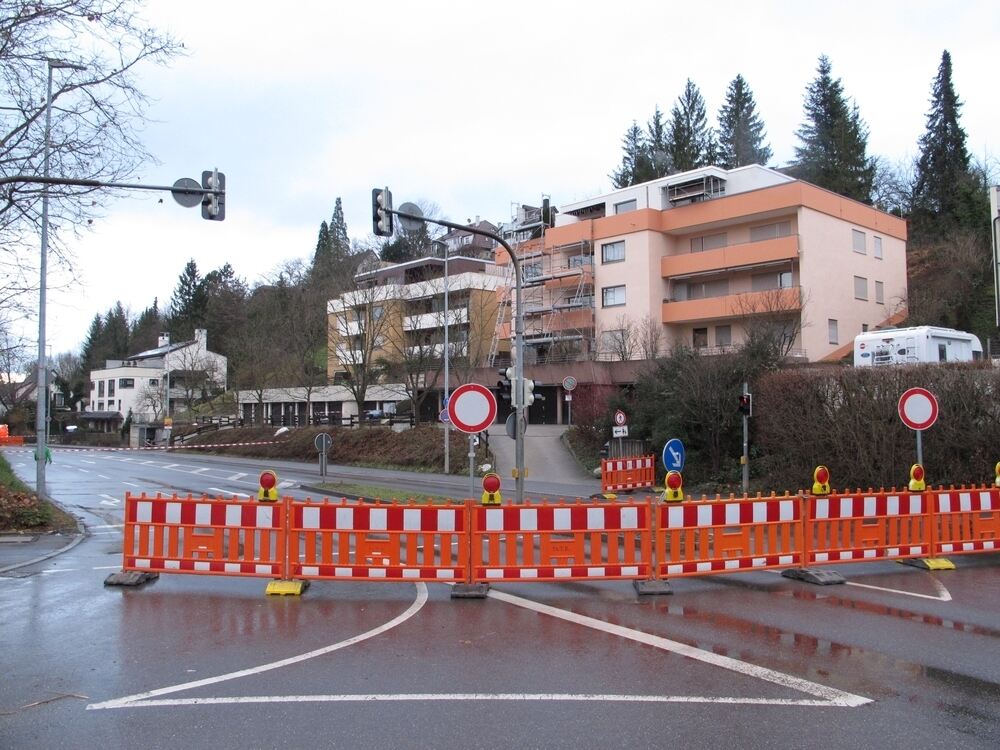 Die Gustav-Schwab-Straße wurde nach einem Wasserrohrbruch im Meisenweg vorsorglich gesperrt.
