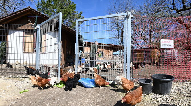 Ein Elektrozaun schützt die Hühnerschar auf dem Hof der Wiedemanns vor dem Fuchs, offenbar jedoch nicht vor Dieben.
