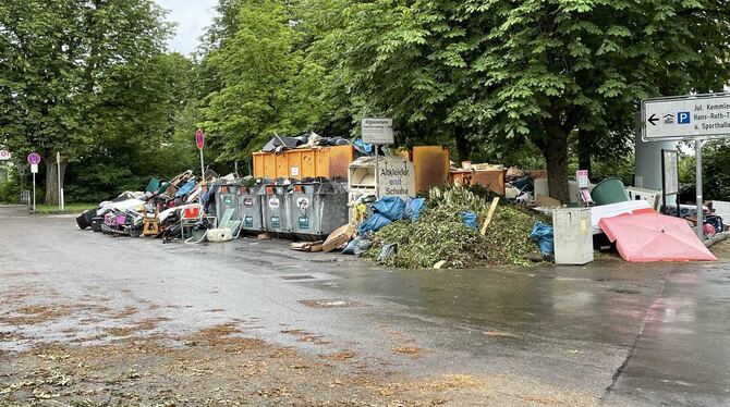Riesensauerei: Wie in Betzingen wurden die Container nicht nur für vom Hagel beschädigte Dinge genutzt. Sperrmüll aller Art, sogar Schadstoffe wurden abgeladen. FOTO: FEUERWEHR