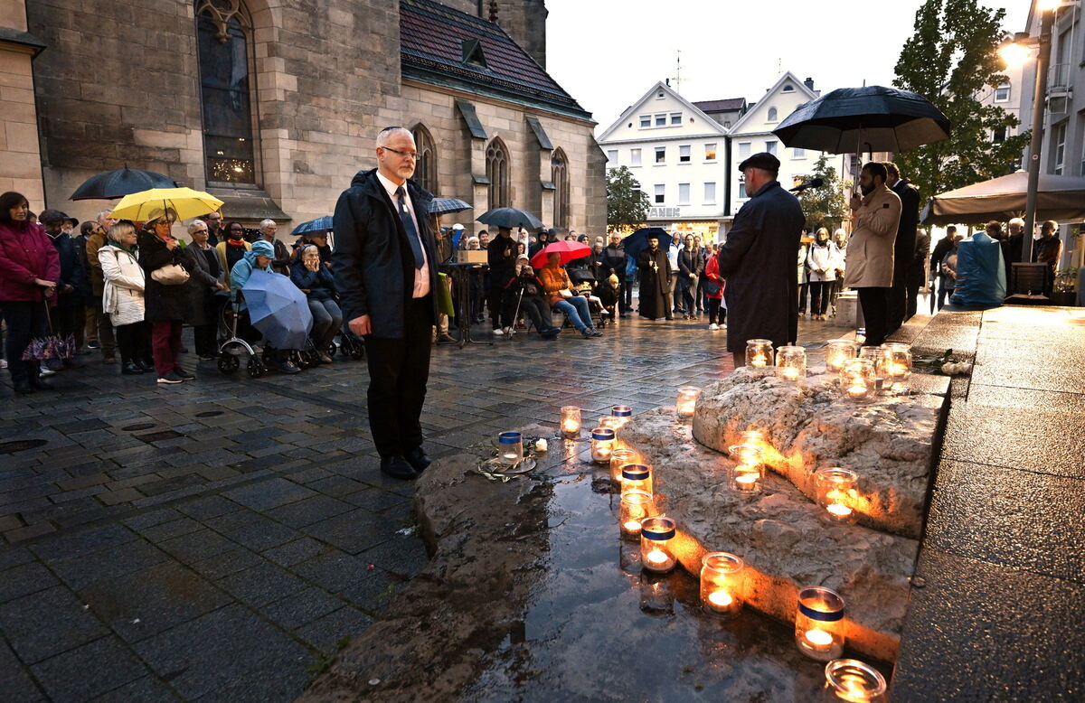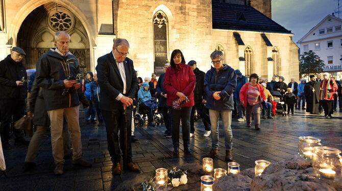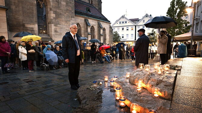 REUTLINGEN. Am Montag jährte sich der Tag des Terrorangriffs der Hamas auf Israel zum ersten Mal. Aus diesem Anlass lud der Rat der Religionen Reutlingen zu einem gemeinsam Friedensgebet und einem interreligiösen Trauerritual an der Marienkirche ein. Rund 60 Menschen, darunter auch Reutlingens Oberbürgermeister Thomas Keck, nahmen am Gebet teil. Vor Ort sprach Rabbiner Mordechai Pavlovsky für die jüdische Gemeinde und Imam Yusuf Celep als Vertreter der Moscheevereine. Auch Landesbischof Ernst Wilhelm Gohl von der evangelischen Landeskirche reiste aus Stuttgart an, um am Trauerritual teilzunehmen.