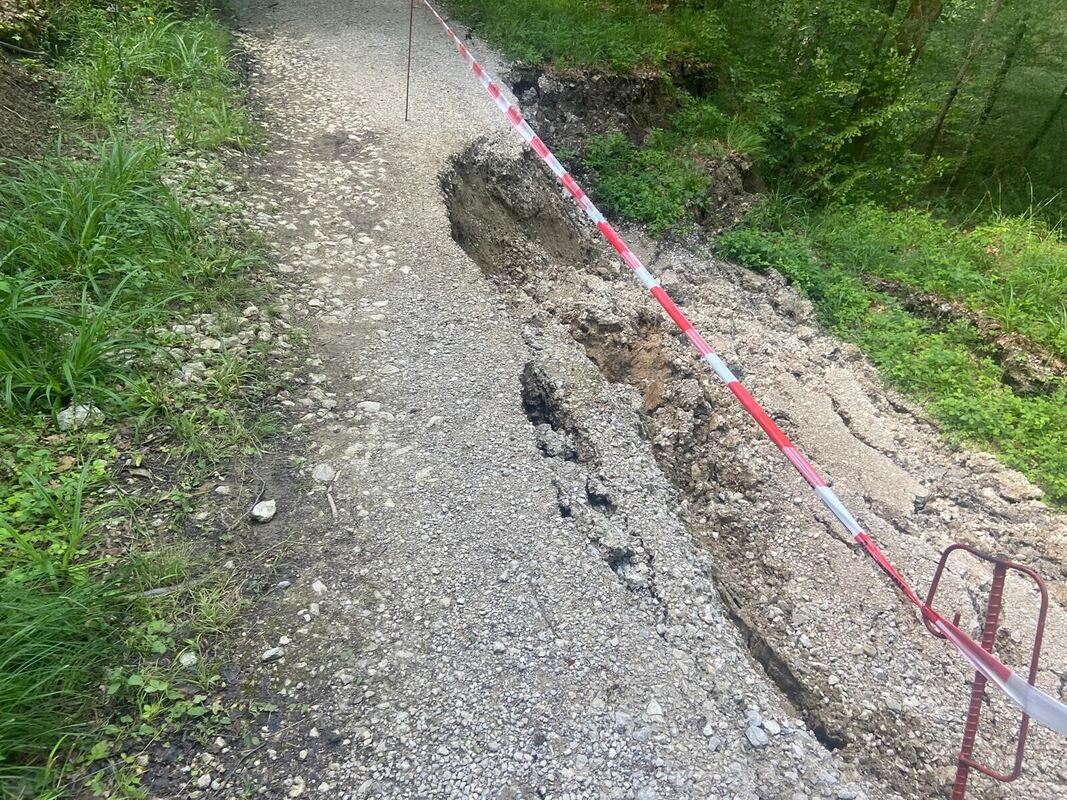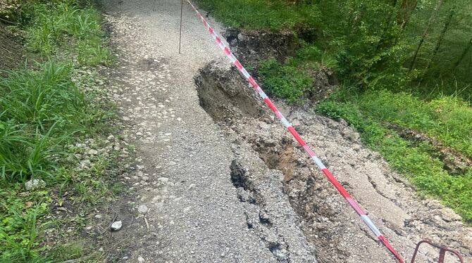 Dieser Weg im Reutlinger Wasenwald ist aktuell gesperrt, weil ein Hang abgerutscht ist.