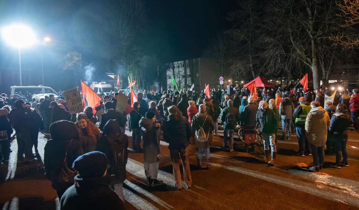 Etwa 200 Menschen protestierten gegen die AfD-Veranstaltung in Betzingen. Ein Teil der Gruppe musste 50 Meter Abstand zum Gebäude halten.