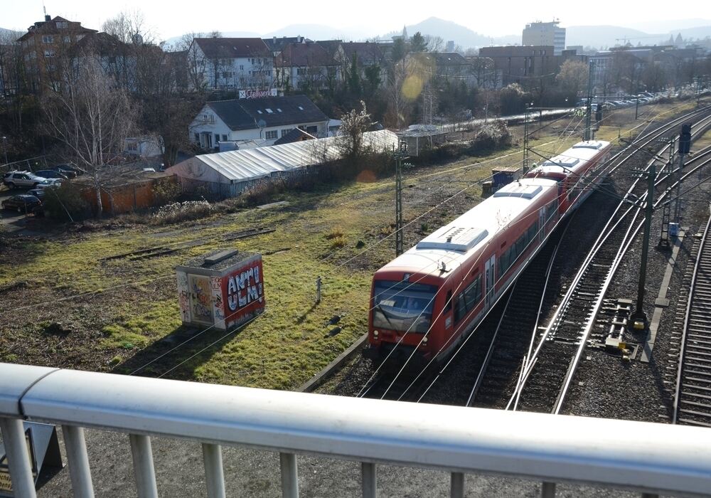 Links der Bahngleise erstreckt sich 1,25 Hektar städtischer Grund, den Fair-Energie beansprucht. GEA-FOTOS: CONZELMANN