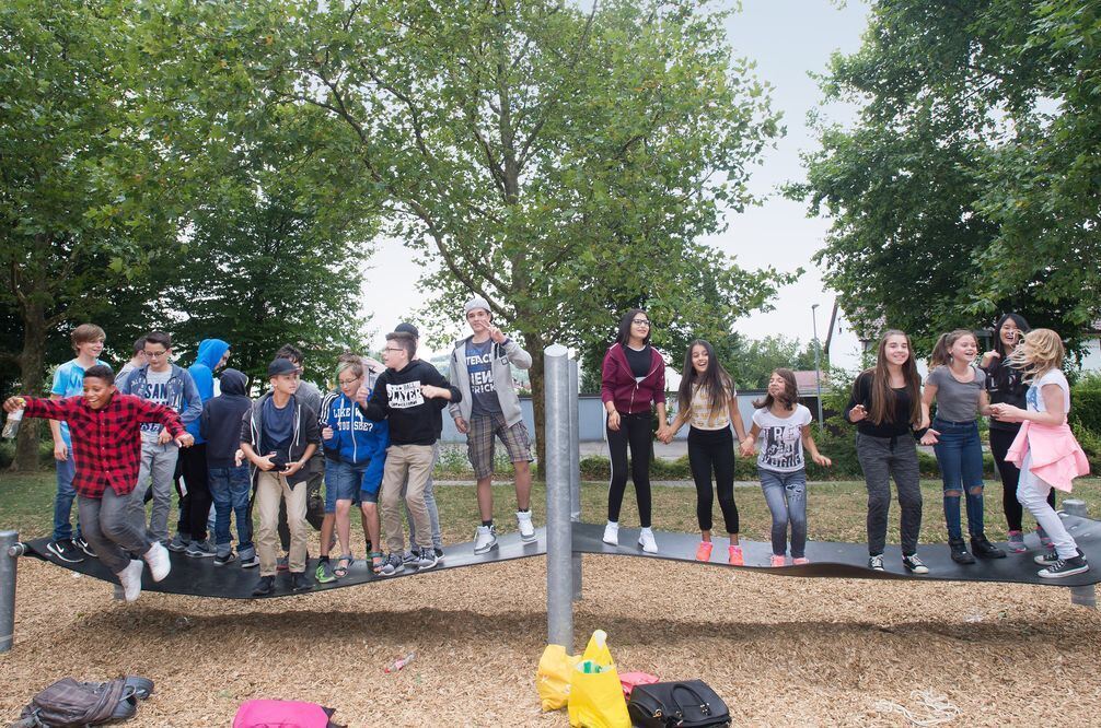 Gar nicht so einfach, auf dem neuen Spielgerät das Gleichgewicht zu halten.