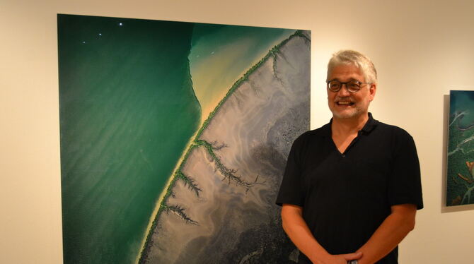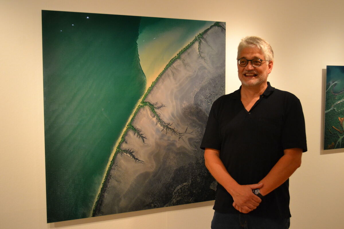 Bernhard Edmaier vor dem Foto des Alligator Rivers.