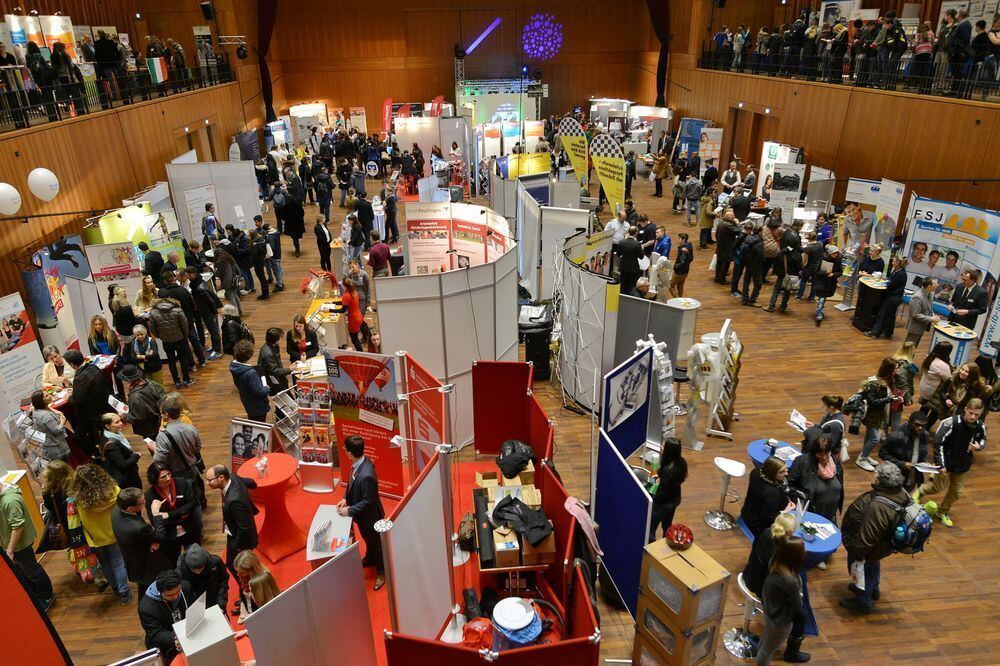 Im großen Saal der Stadthalle gab’s an Infoständen jede Menge Informationen zu den Themen Ausbildung und Beruf. FOTO: NIETHAMMER