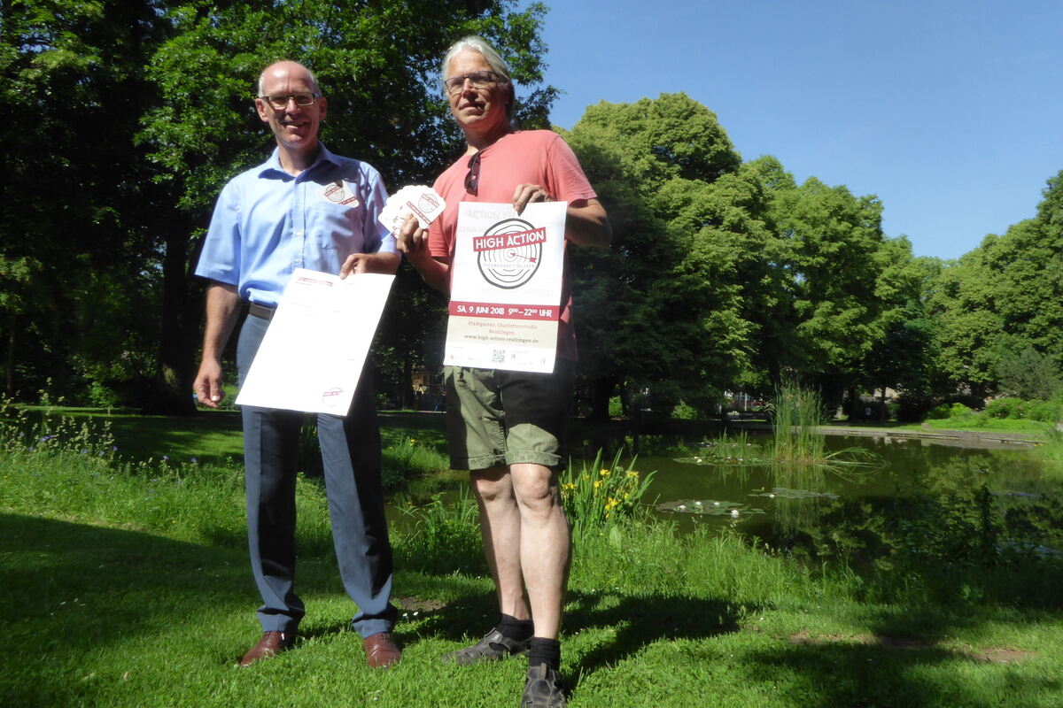 Uwe Weber (links) und Lutz Adam stellen das neue Spiele-Event »High Action – Jugendarbeit erleben« vor.