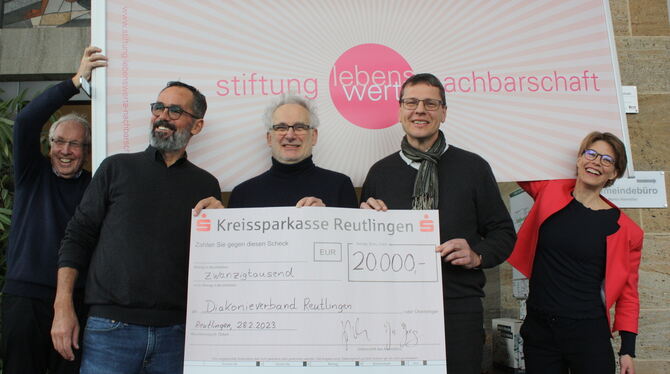 Die Koordinatoren der Plattform Lebenswert, Otto Haug und Mimi Böckmann, rahmen hier (von links) Pfarrer Stephan Sigloch, Jo Jerg (Stiftung Lebenswerte Nachbarschaft) und Joachim Rückle (Diakonieverband Reutlingen) ein. FOTO: STURM