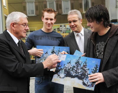 Lions und Leos mit dem Adventskalender 2008 (von links): Claus Maier, Jürgen Weber, Michael Bläsius und Matthias Weber machen sich für Hilfsprojekte stark.