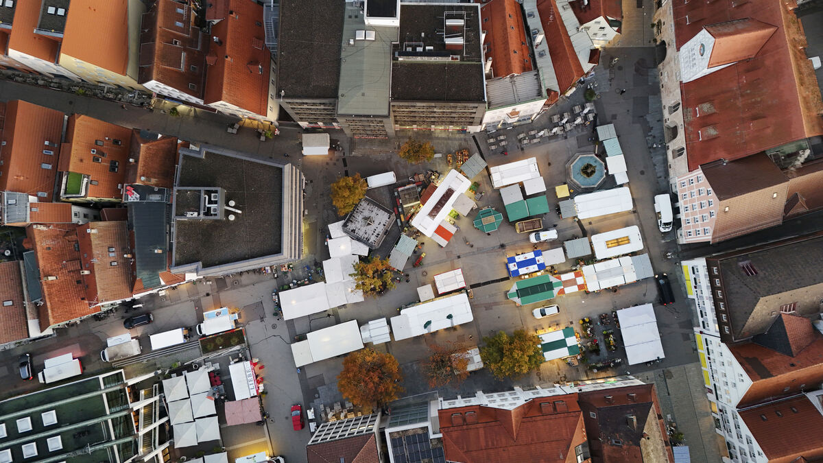Der Reutlinger Marktplatz von oben: Die Aufenthaltsqualität soll verbessert werden, unter anderem mit neuen Bäumen. Bisher ist es eher eine Betonwüste.