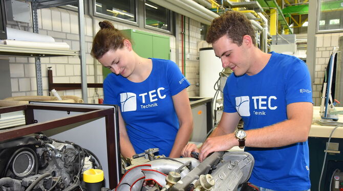 Diese beiden Studierenden der Fakultät Technik zeigen, was praxisorientiertes Studium an der Hochschule Reutlingen bedeutet.
